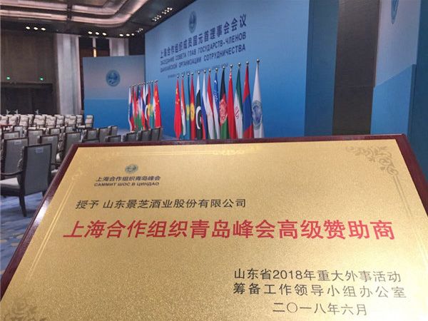 6月25日,上海合作組織青島峰會贊助企業(yè)授牌儀式在青島國際會議中心舉行。儀式上授予一品景芝·芝香為上海合作組織青島峰會指定用酒,授予景芝酒業(yè)為“上海合作組織青島峰會高級贊助商”。