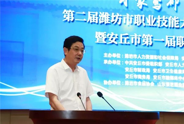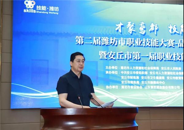 安丘市政府領(lǐng)導(dǎo)曹忠誠發(fā)表致辭。指出,這次高規(guī)格比賽在安丘齊魯酒地舉辦,既是對安丘市技能人才培養(yǎng)工作的充分信任和肯定,更是對人才工作的一次大促進(jìn)、大考驗(yàn),是弘揚(yáng)工匠精神的重要舉措,必將帶動(dòng)全市人才技能水平整體提高,為全市技能人才隊(duì)伍建設(shè)貢獻(xiàn)安丘力量。