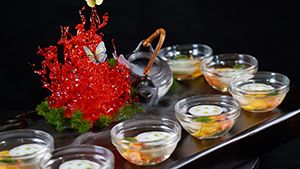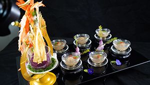 酒鄉(xiāng)錦毛鯉、翻江倒海、荷塘月色、鮑魚(yú)紅燒肉......星廚們用自己的技藝和創(chuàng)意匯聚成精美絕倫、寓意豐富的美食藝術(shù)品;一道道做工精細(xì)、別具匠心的佳肴讓人垂涎欲滴,也難倒了現(xiàn)場(chǎng)評(píng)委。